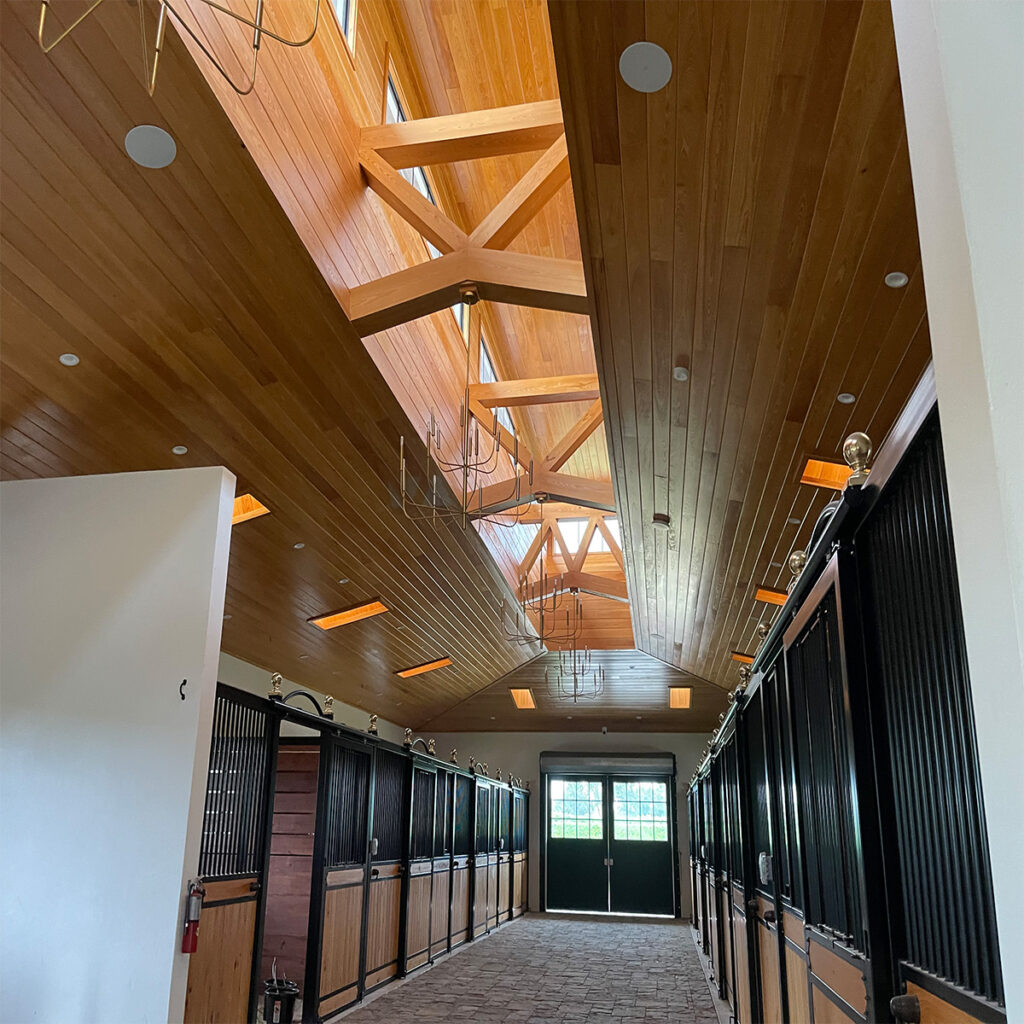 For this project in the barn, which included the stables, riding arena, and fire-pit area, Innovative Home Technology used