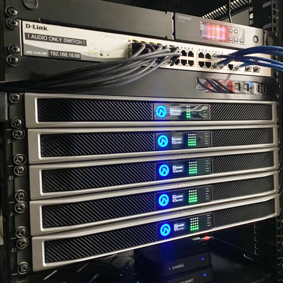 Voigt chose multiple  Connect Series 354 amplifiers to power the loudspeakers installed throughout the hotel. The IoT-enabled 4-channel 354 provides 350 watts per channel, supports Hi-Z (70V or 100V) and Lo-Z selectable by channel, and features Smart Power Bridge technology. With three ways to connect, the hotel can engage the built-in Wi-Fi access point, connect to the center’s Wi-Fi, or connect to the local area network via Cat5 or Cat6 cable.