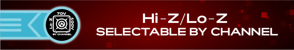 Connect Series amplifiers offer a significant advantage with their ability to directly select between Lo-Z and 70V/100V operation on each channel. This feature eliminates the need for separate amplifiers to handle different speaker impedances, streamlining installations and reducing equipment costs. Integrators can mix and match low-impedance and constant-voltage speakers on the same system without worrying about compatibility, allowing for greater flexibility in system design.