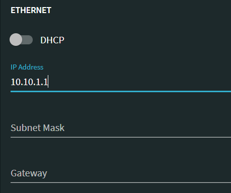 Under the “Ethernet” section, disable the DHCP setting