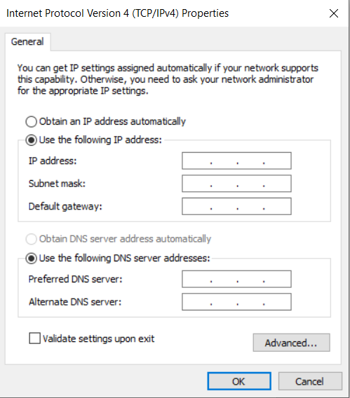 Select the option “Use The Following IP Address”.
