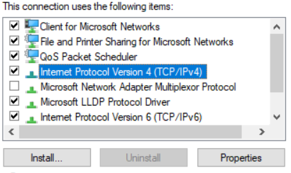 Now find and highlight “Internet Protocol Version 4 (TCP/IPv4). Click on “Properties”.