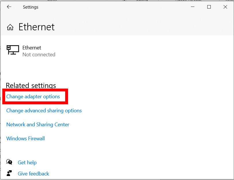 Click on “Change Adapter Options” (Windows)