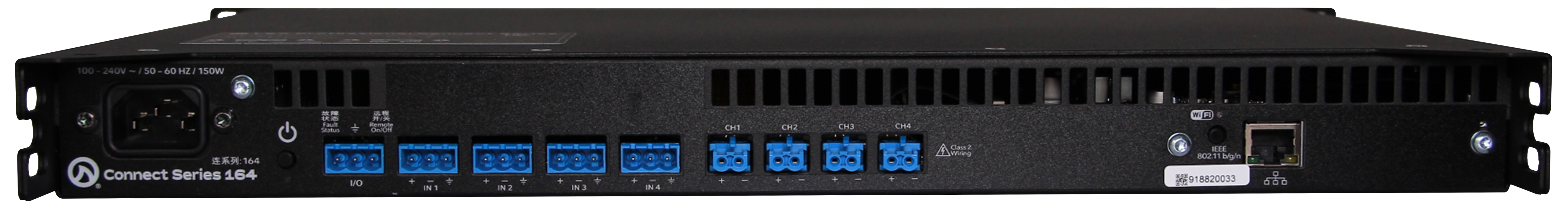 The CONNECTSERIES 164 is a 4-channel amplifier with 160 watts per channel. As part of the Network CONNECTSERIES, the world’s first Internet of Things- (IoT) enabled professional-grade amplifiers, it is perfectly suited for small to medium-scale installations. The 164 features direct HiZ (70V or 100V) or LoZ selectable by channel. With three ways to connect, you can engage the built-in Wi-Fi access point, connect to the venue’s Wi-Fi, or use the FAST Ethernet to connect to any local area network via Cat5 or Cat6 cable.
