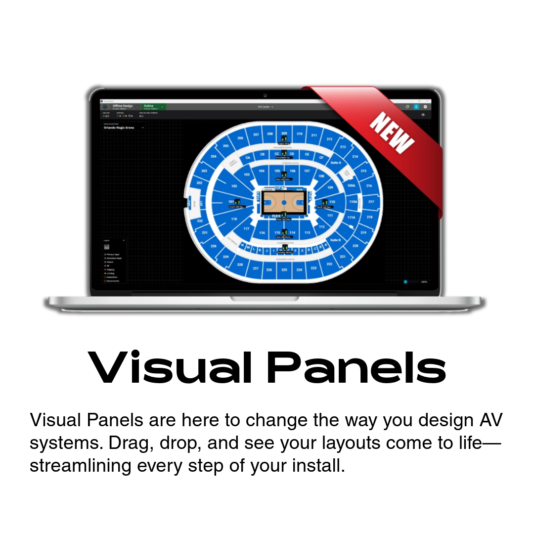 Launching at InfoComm 2025, the new Visual Panels feature adds an intuitive, venue-based interface that displays system elements in context using preconfigured control groups. This makes it easier for integrators and operators to understand system status, zone control, and performance at a glance—streamlining monitoring and interaction with complex audio systems.